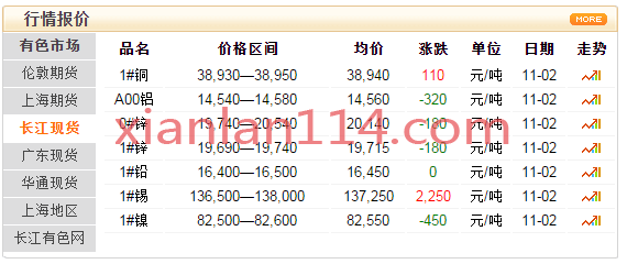 11月2日 长江现货最新行情