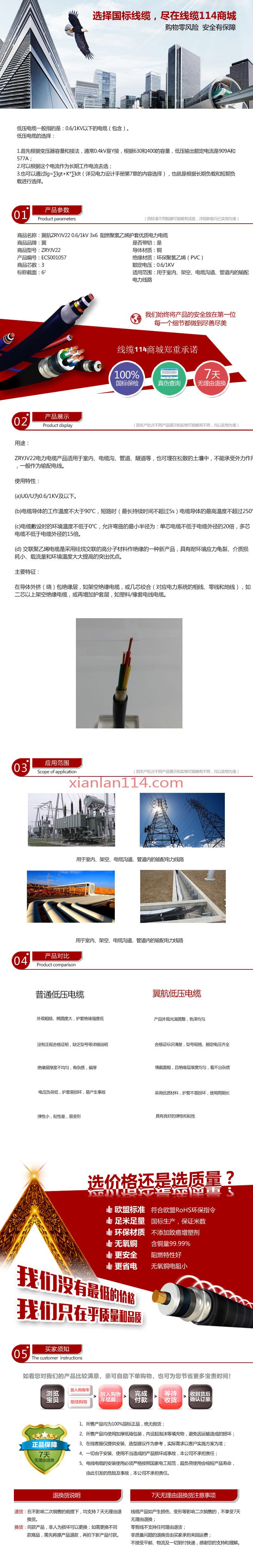 - 商品名称:翼航正品优质线缆ZRYJV22 0.6/1kV 3x6 阻燃交联聚乙烯绝缘钢带铠装三芯聚氯乙烯护套电力电缆厂家直销