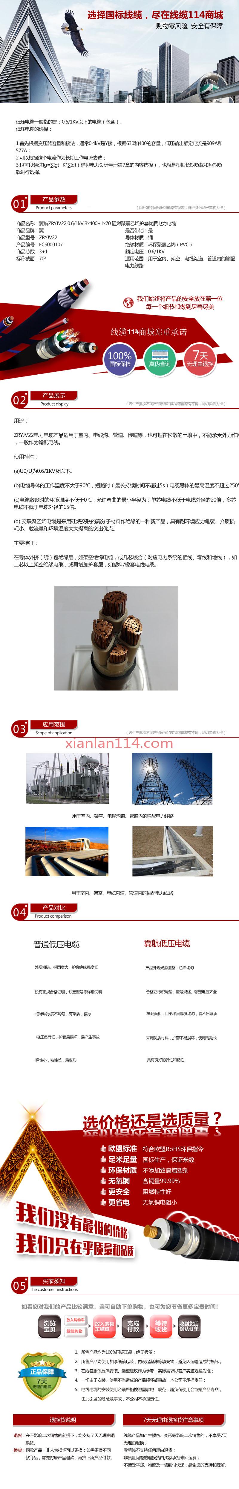 商品属性 [是否带铠] 是 [材质] 铜 [用途] 用于工矿企业和城市电网中 [执行标准] GB/T12706-2002 [型号] ZRYJV22 [数量单位] 米 [芯数] 3+1 [截面] 120² [电压] 0.6/1kV