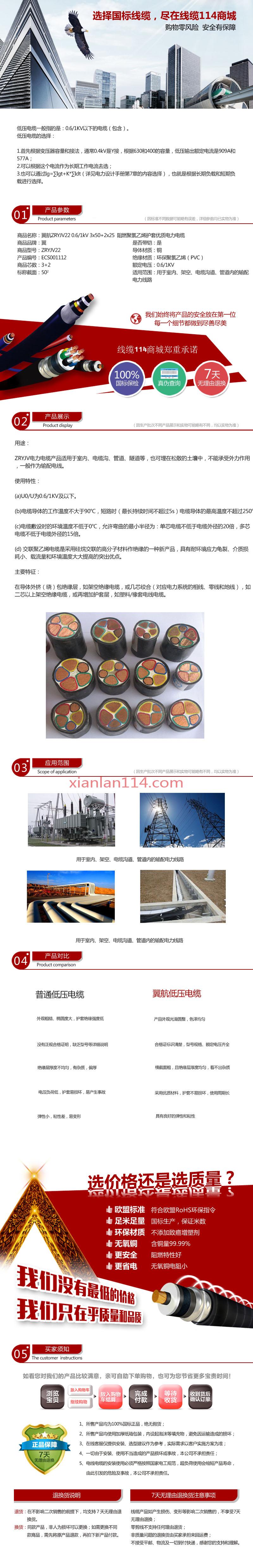 - 商品名称:翼航优质线缆厂家直销ZRYJV22 0.6/1kV 3x50+2x25阻燃交联聚乙烯绝缘钢带铠装3+2芯聚氯乙烯护套电力电缆国标正品