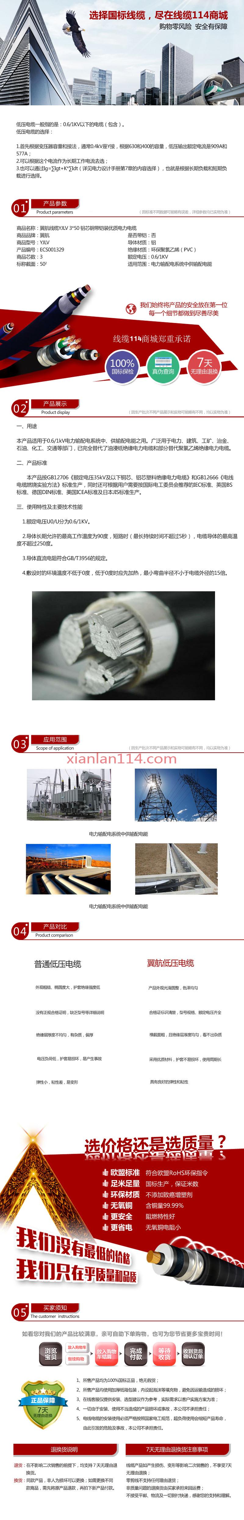 - 商品名称:翼航优质线缆厂家直销 YJLV 0.6/1kV 3x50交联聚乙烯绝缘铝芯聚氯乙烯护套电力电缆国标正品