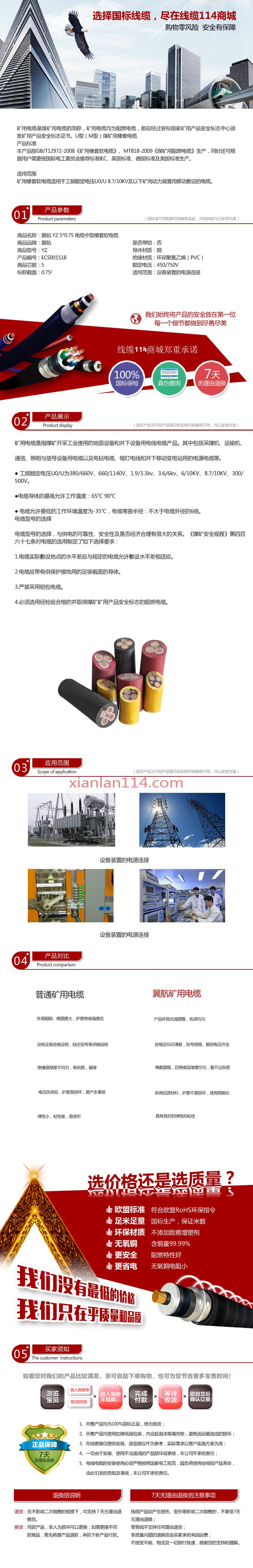 - 商品名称:供应翼航线缆YZ 5*0.75 电缆中型橡套软电缆优质正品足方足米