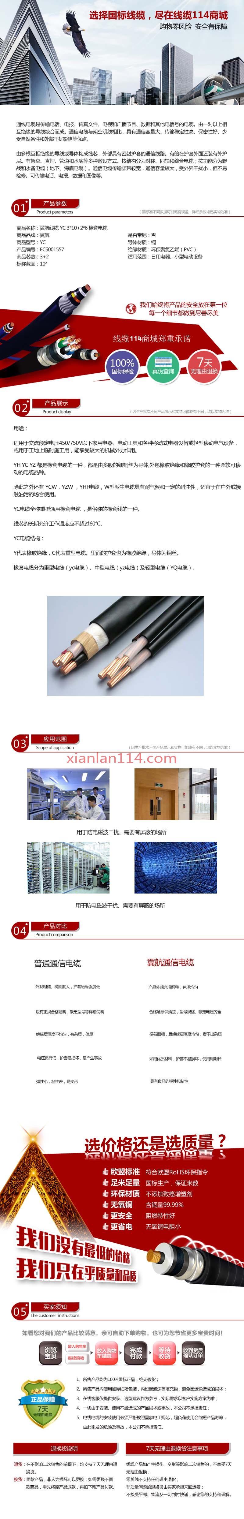 - 商品名称:供应翼航线缆YC 3*10+2*6 优质正品铜芯重型通用橡套电缆足方足米