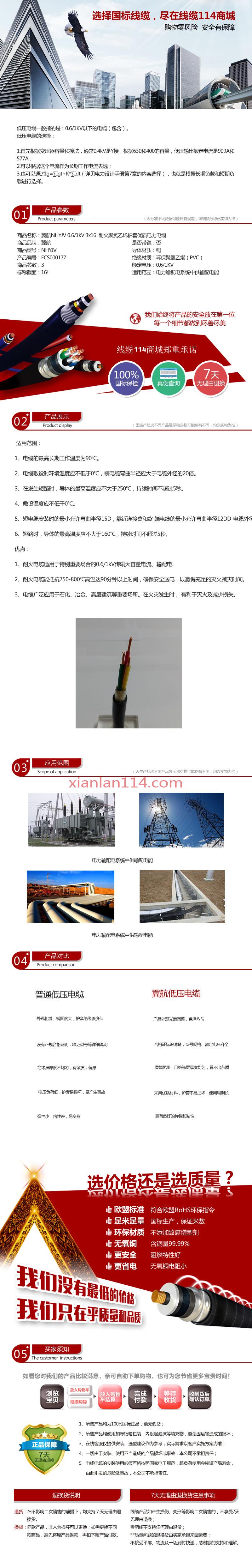 - 商品名称:翼航线缆三芯耐火交联聚乙烯绝缘铜芯聚氯乙烯护套NHYJV 0.6/1kV 3*16电力电缆厂家直销国标正品