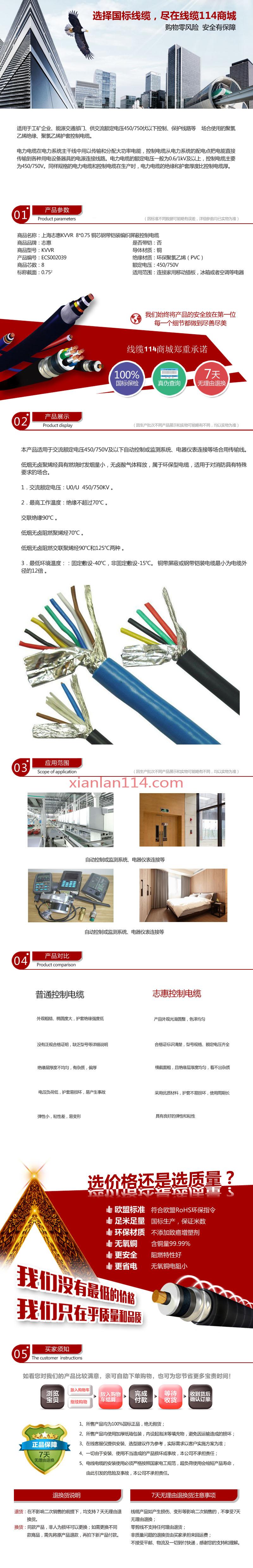 - 商品名称:供应上海志惠KVVR 8*0.75 多芯黑色护套线 足方足米 保质保量
