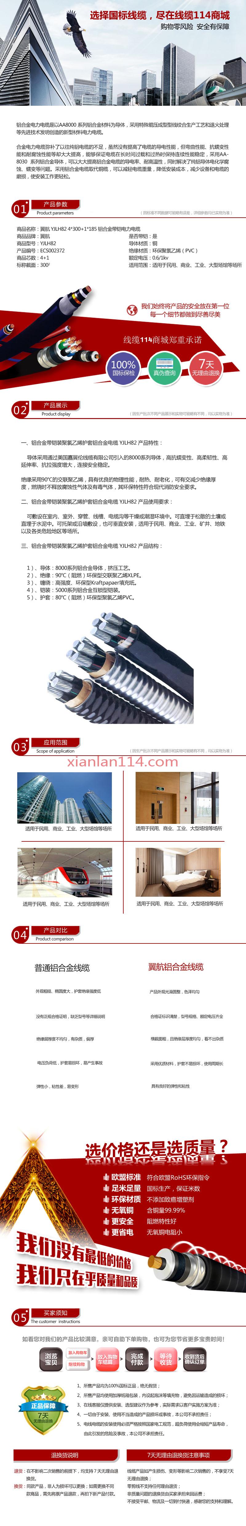 商品属性 [截面] 300² [芯数] 4+1 [是否带铠] 是 [材质] 铝合金 [电压] 0.6/1KV [用途] 适用于民用、商业、工业、大型场馆等场所 [型号] YJLH82 [数量单位] 米