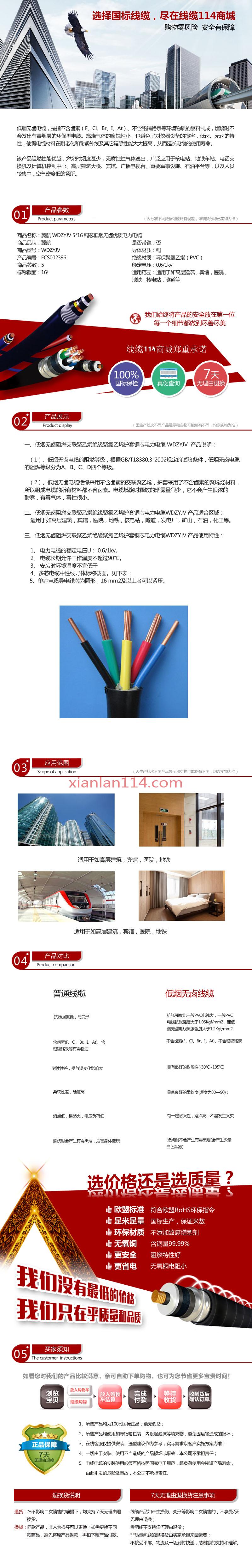 商品属性 [截面] 16² [芯数] 5 [是否带铠] 否 [材质] 铜 [电压] 0.6/1kv [用途] 适用于如高层建筑,宾馆,医院,地铁,核电站,隧道等 [型号] WDZYJV [数量单位] 米