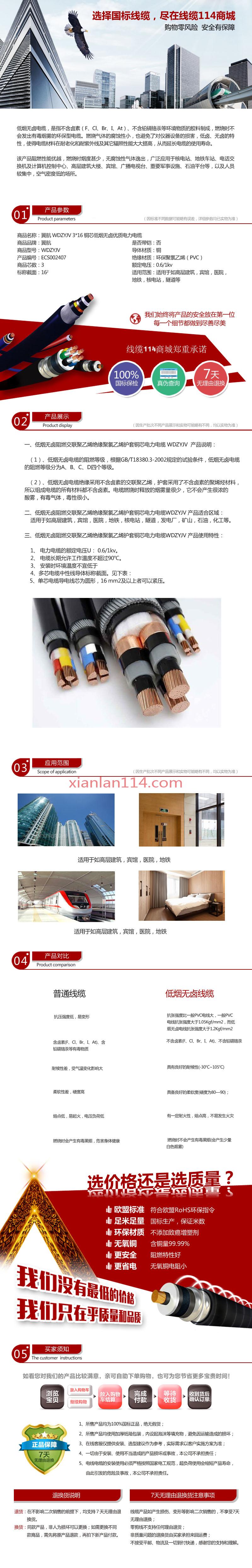 - 商品名称:供应翼航WDZYJV 3*16 铜芯低烟无卤优质电力电缆 足方足米