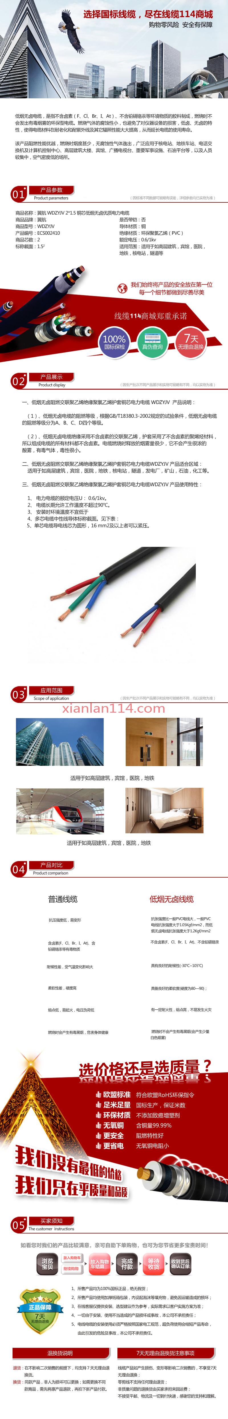 - 商品名称:供应翼航WDZYJV 2*1.5 铜芯低烟无卤优质电力电缆 足方足米