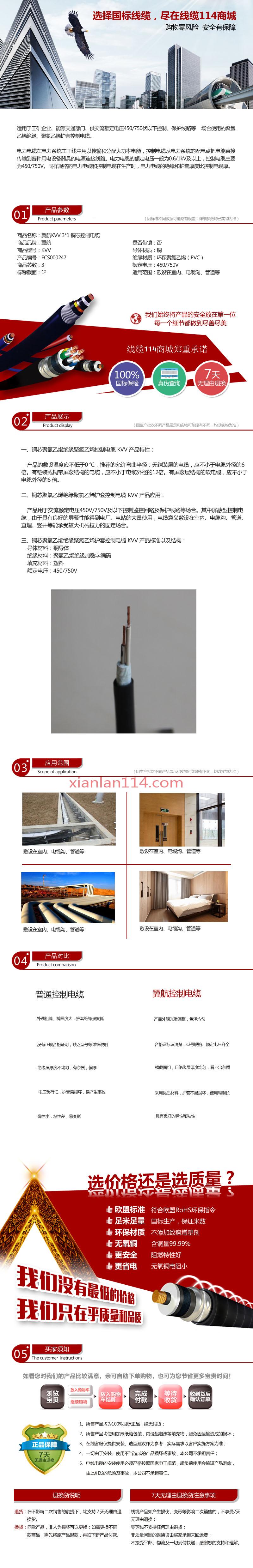 - 商品名称:供应翼航线缆KVV 3*1 铜芯控制电缆 足方足米 保质保量