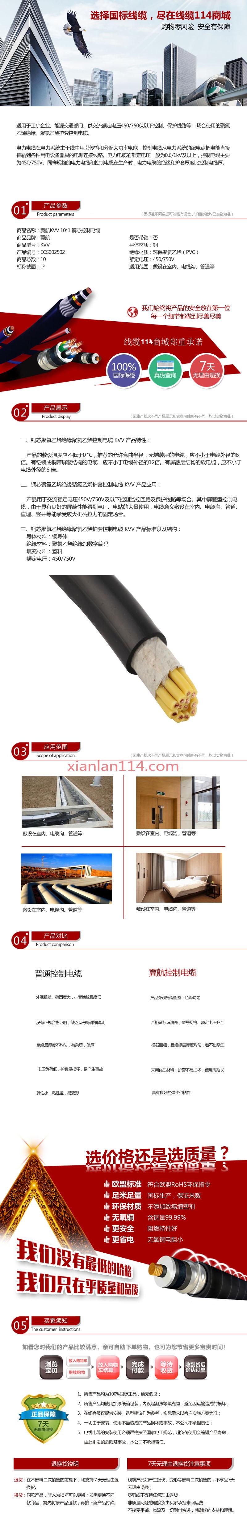 - 商品名称:供应翼航KVV 10*1 铜芯控制电缆 足方足米 保质保量