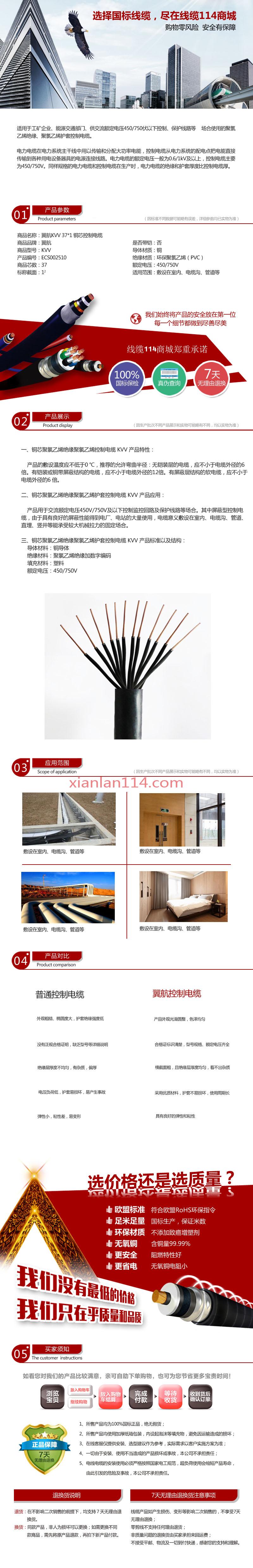 - 商品名称:供应翼航KVV 37*1 铜芯控制电缆 足方足米 保质保量