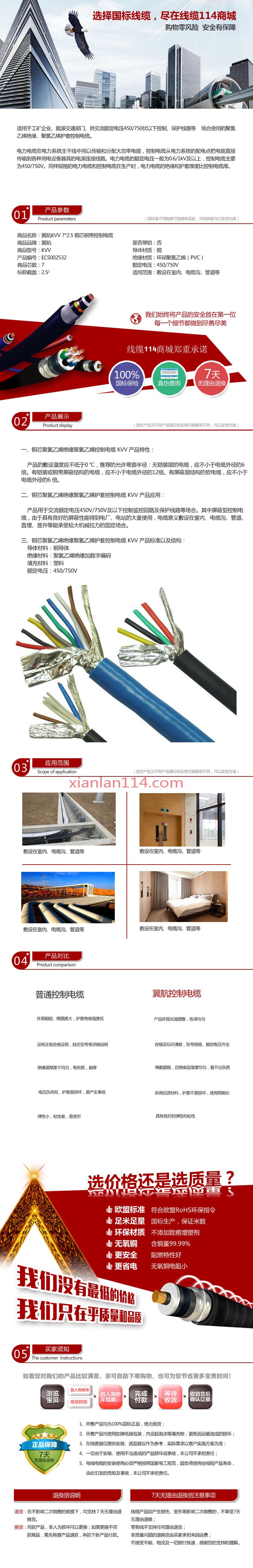 - 商品名称:供应翼航KVV 7*2.5 铜芯控制电缆 足方足米 保质保量