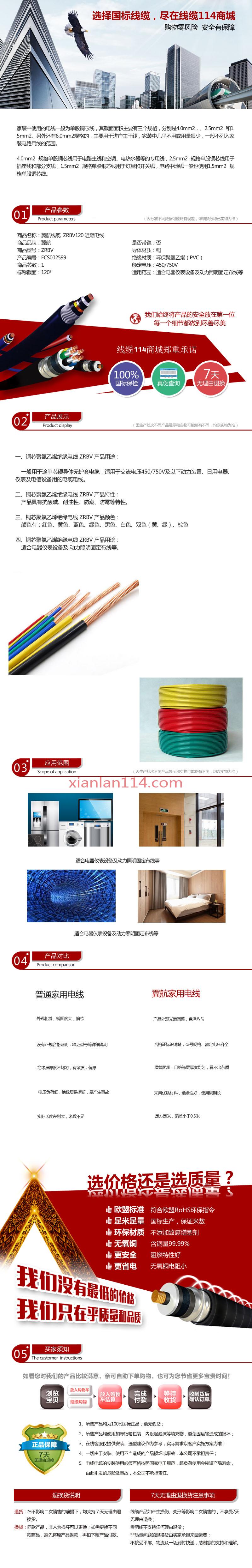 商品属性 [截面] 120² [材质] 铜 [电压] 450/750 [用途] 适合电器仪表设备及动力照明固定布线等 [型号] ZRBV [长度] 100m/盘 [数量单位] 盘