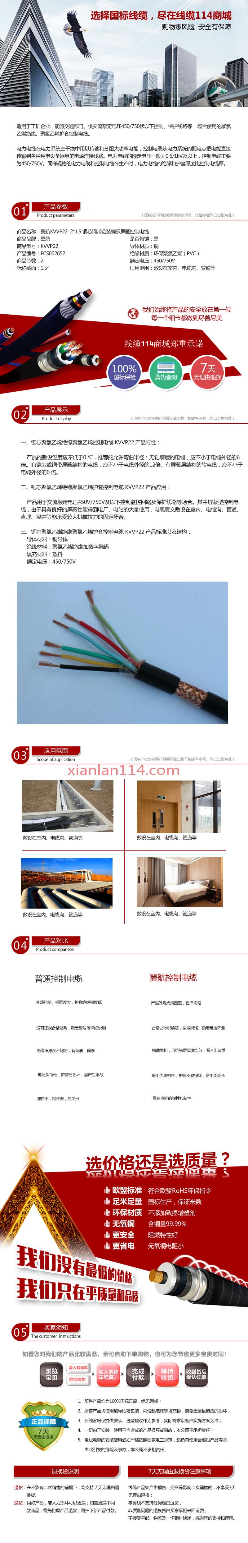 - 商品名称:供应翼航KVVP22 2*1.5 铜芯钢带铠装屏蔽控制电缆 足方足米 保质保量