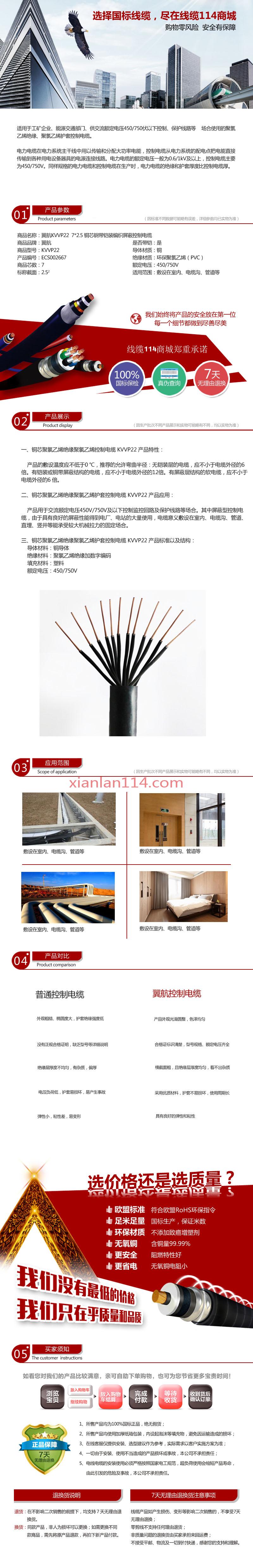 - 商品名称:供应翼航KVVP22 7*2.5 铜芯钢带铠装编织屏蔽控制电缆 足方足米 保质保量