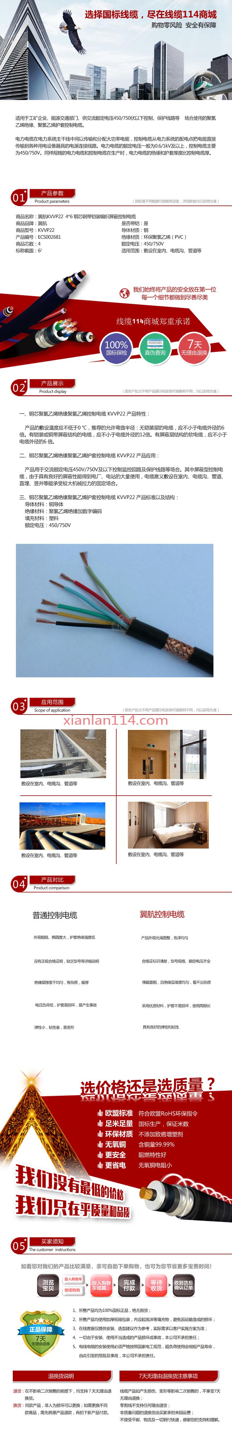 - 商品名称:供应翼航KVVP22 4*6 铜芯钢带铠装编织屏蔽控制电缆 足方足米 保质保量