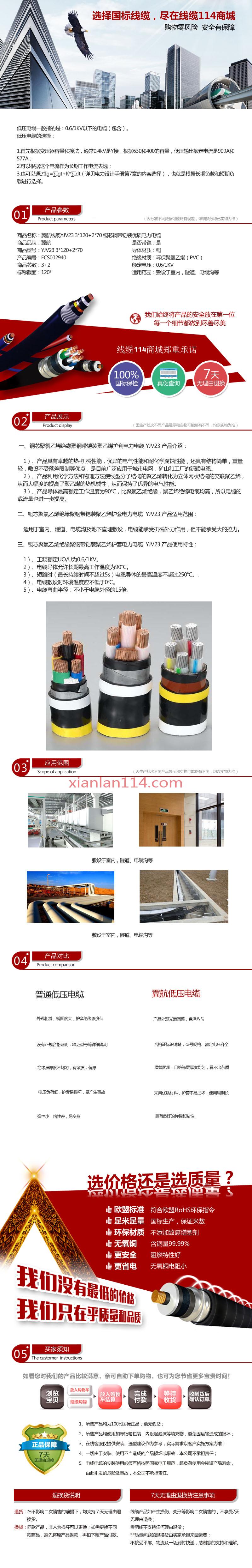 - 商品名称:供应翼航线缆YJV23 3*120+2*70 铜芯钢带铠装优质电力电缆 足方足米 保质保量