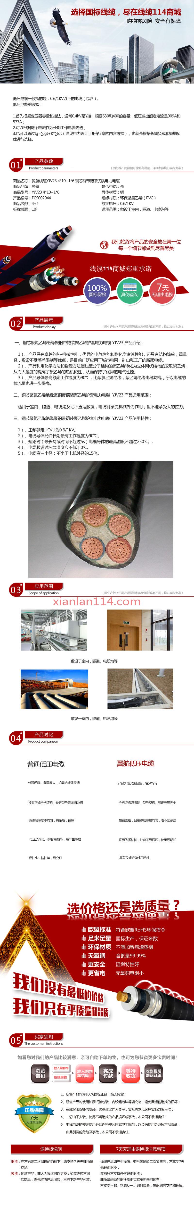 - 商品名称:供应翼航线缆YJV23 4*10+1*6 铜芯钢带铠装优质电力电缆 足方足米 保质保量