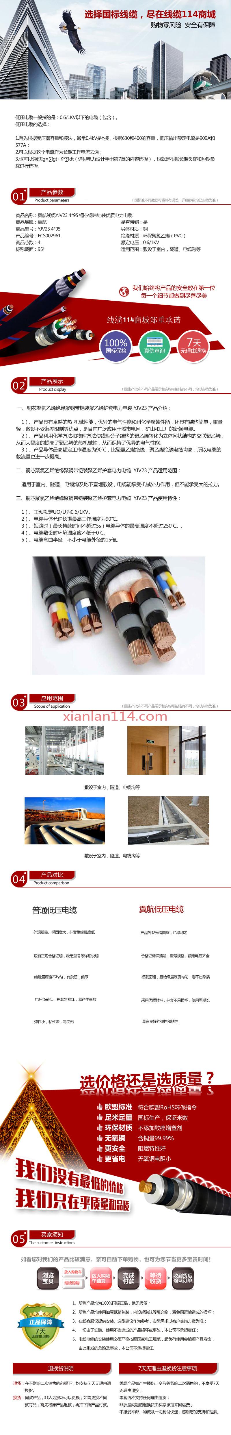 商品属性 [截面] 95² [芯数] 4 [是否带铠] 是 [材质] 铜 [电压] 0.6/1KV [用途] 敷设于室内,隧道、电缆沟等 [型号] YJV23 [数量单位] 米