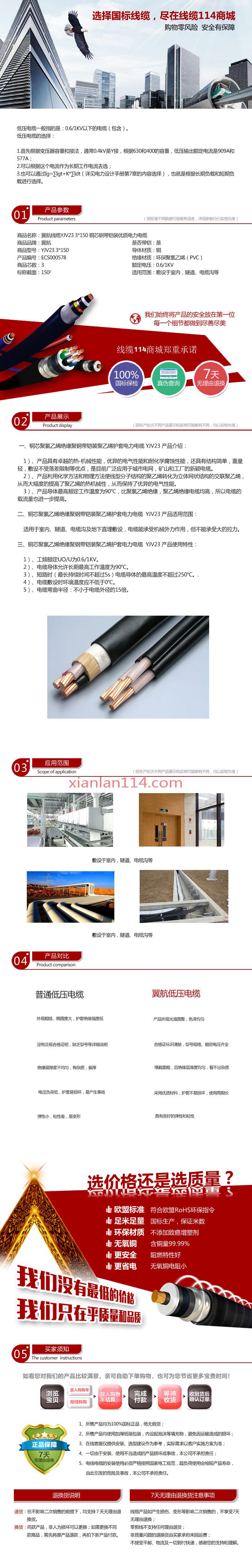 商品属性 [截面] 150² [芯数] 3 [是否带铠] 是 [材质] 铜 [用途] 电力输送 [执行标准] GB12706-2008 [型号] YJV23 [数量单位] 米 [电压] 0.6/1kV