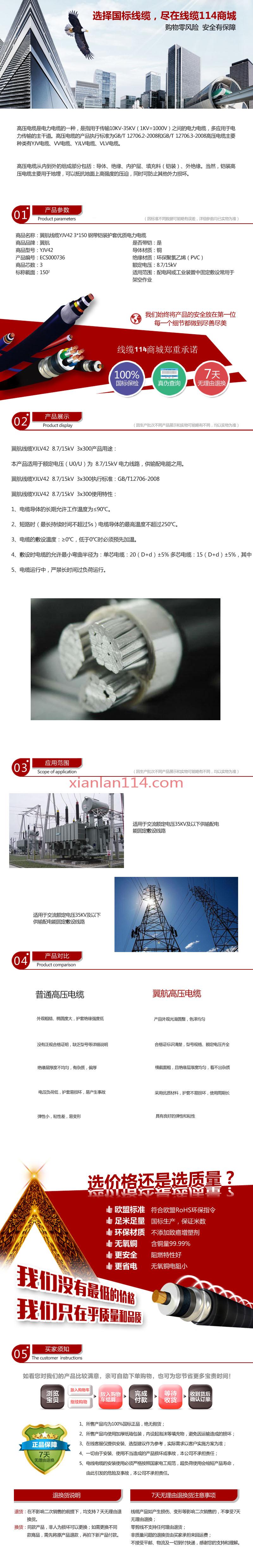 - 商品名称:供应翼航线缆YJV42 3*150 铜芯钢带铠装护套优质电力电缆 足方足米 保质保量