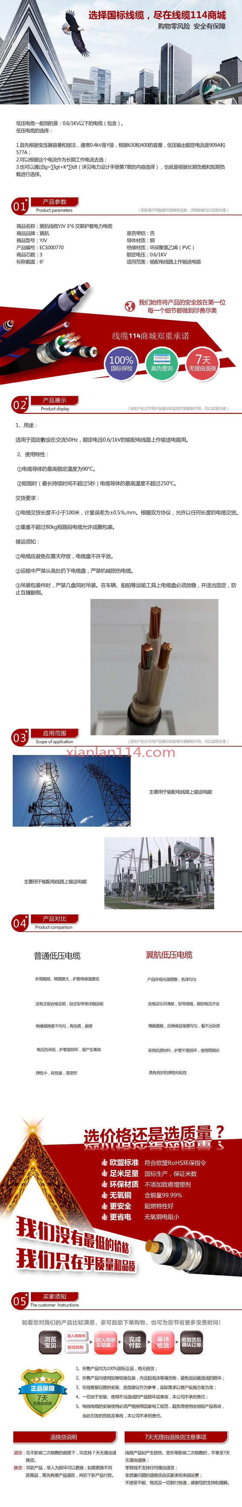 - 商品名称:供应翼航线缆YJV 3*6 交联护套电力电缆 足方足米 保质保量