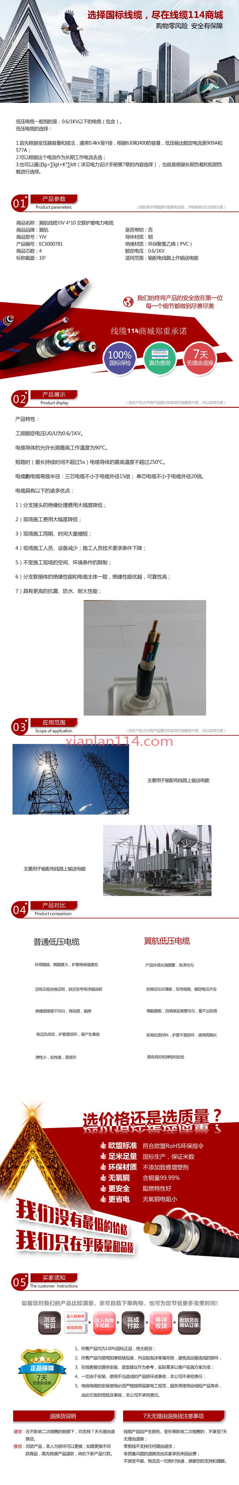 - 商品名称:供应翼航线缆YJV 4*10 交联护套电力电缆 足方足米 保质保量