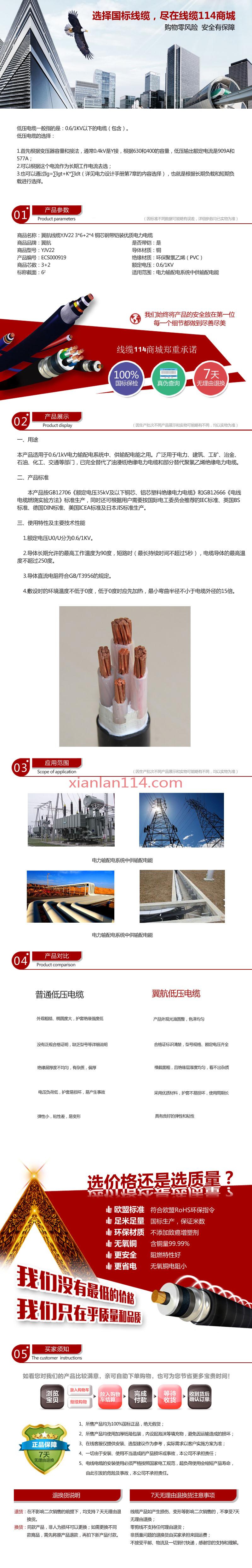 - 商品名称:供应翼航线缆YJV22 3*6+2*4 钢带铠装优质电缆 足方足米 保质保量