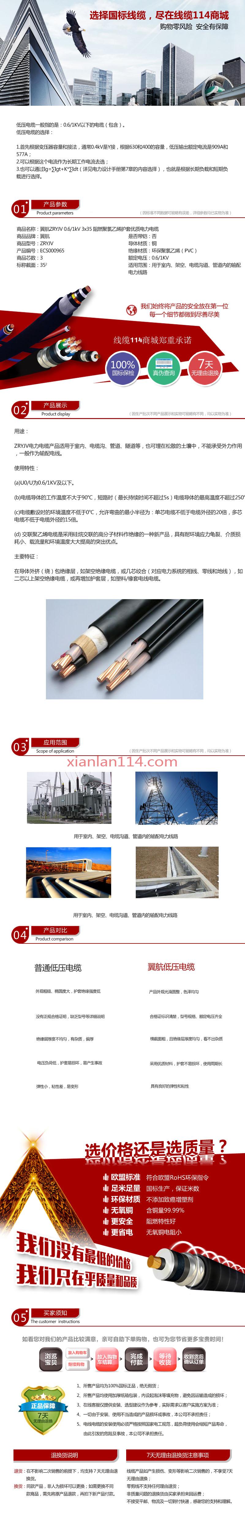- 商品名称:翼航线缆厂家直销 ZRYJV 0.6/1kV 3x35优质电缆阻燃交联聚乙烯绝缘三芯聚氯乙烯护套电力电缆国标正品